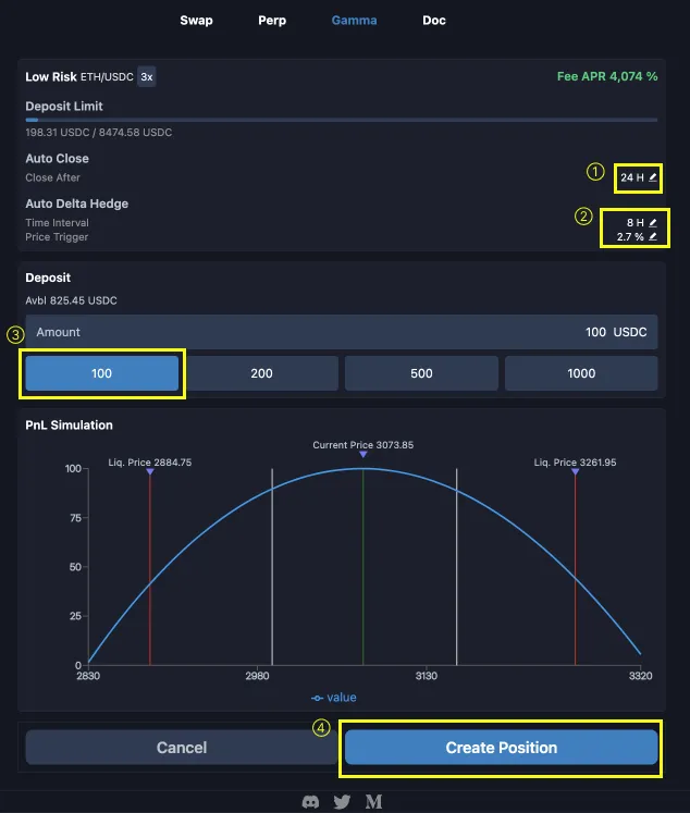 Connect your wallet from the right corner. after connecting your wallet, you can create your position immeadetly without any Vault.